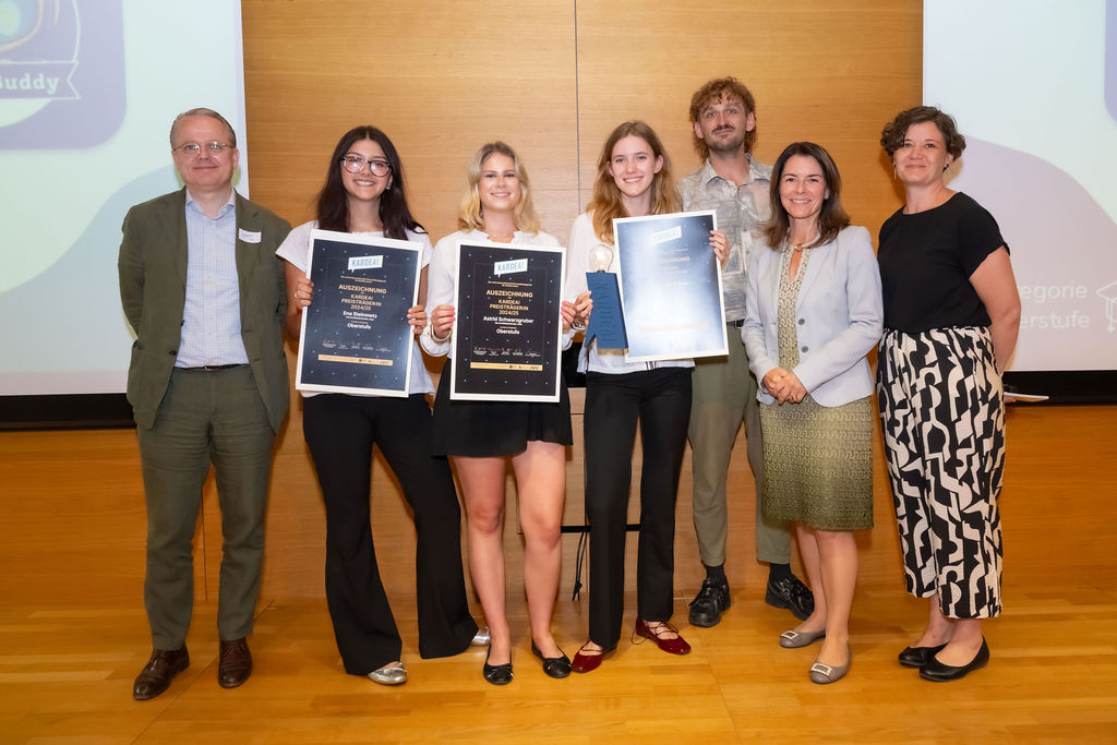 Mehr als 250 Gäste, darunter über 200 Schüler*innen aus fünf Bundesländern, feierten elf herausragende Projekte, die von einer Fachjury unter dem Ehrenschutz von Staatssekretärin Barbara Eibinger-Miedl ausgewählt wurden. Neben den Preisträgerinnen waren hochrangige Vertreter*innen wie JKU-Rektor Stefan Koch, FLiP-Direktor Philip List, ERSTE Stiftung-Vorstandsmitglied Gudrun Egger, Sparkassen-Generaldirektorin Stefanie Huber und der Leiter des Instituts für Wirtschafts- und Berufspädagogik Georg Hans Neuweg dabei.