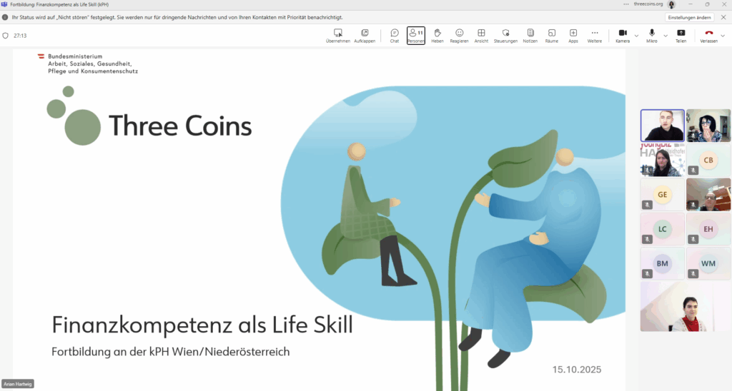 In Kooperation mit mehreren Pädagogischen Hochschulen in Österreich bieten wir regelmäßig kostenlose, für alle Lehrkräfte offene Fortbildungen für die Sekundarstufe I und II an und vermitteln praxisnahes Know-how zur nachhaltigen Verankerung von Finanzbildung im Unterricht.